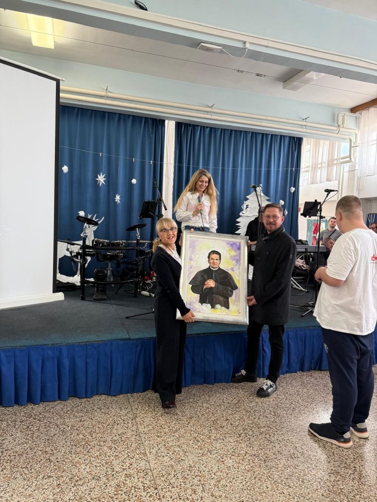 Nakon Svete mise, proslava se nastavila u našem Centru. U goste su nam pristigli prijatelji iz OPG-a Lučić i Moto-kluba Fjaka, naši dugogodišnji prijatelji. Ovom prilikom izrazili smo zahvalnost gospodinu Lučiću koji dugi niz godina uključuje naše učenike u otvaranje Božićnog sela paljenjem prve adventske svijeće. Na dar smo dobili prekrasan portret zaštitnika našeg Centra, Svetog don Ivana Bosca.